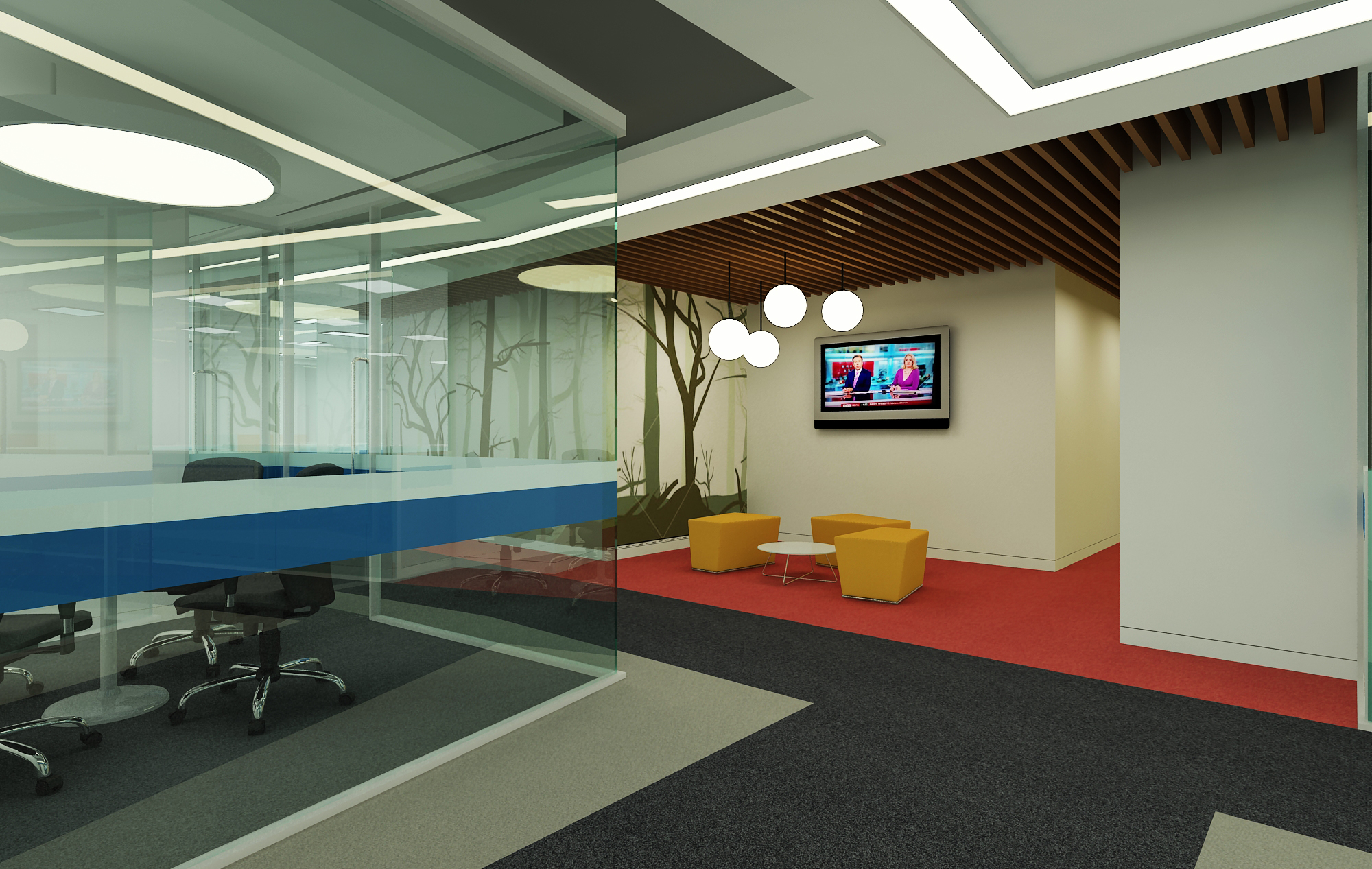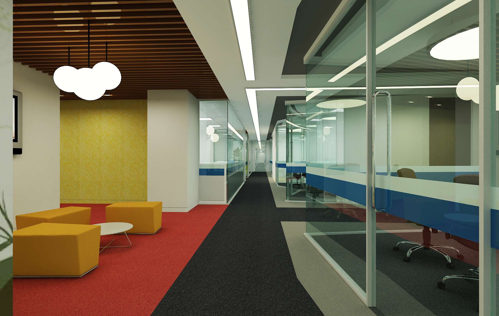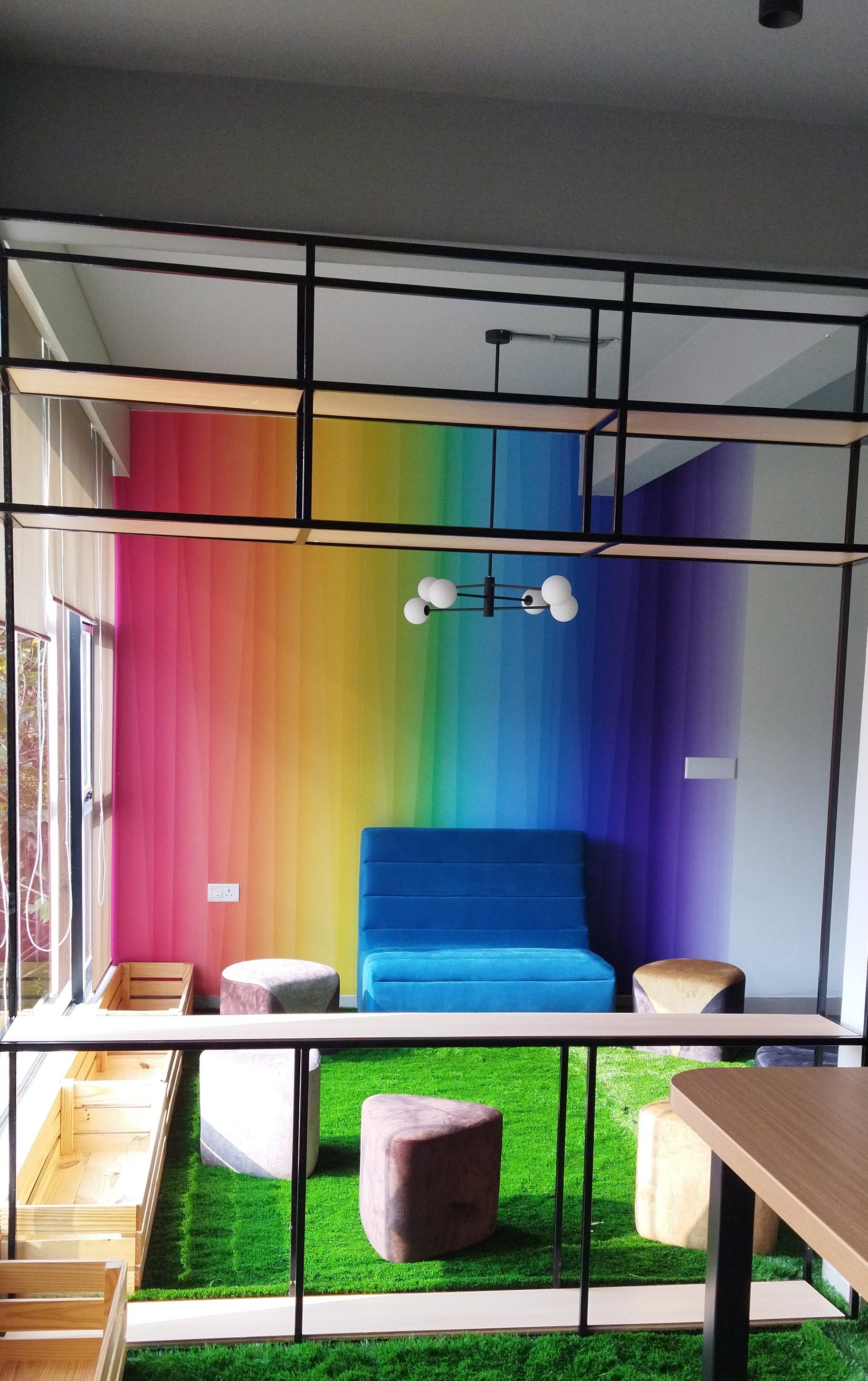 The design echoes efficient space utilization. We feel that all our needs have been cautiously speculated and nurtured into the available space. This is an exemplar of a minimum cost- space efficient design without altering the serenity in the aesthetics of our office - iSquaresoft.
